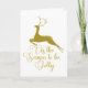 An elegant gold reindeer leaps on a beautiful holiday card with the beautiful Christmas song lyric Tis The Season To Be Jolly in sophisticated calligraphy. Customise the inside with your own custom message.