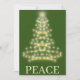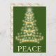 Keep in touch with the ones you love this holiday season by sending them this card. This Christmas card design features a festive green background with a stylised gold Christmas tree with a star on top. The text on the front says "PEACE." Put your own greeting or keep the provided popular and trendy text for your convenience.