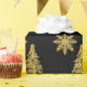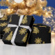 Wrap your holiday presents in this elegant gold and black wrapping paper. This paper features a textured look Christmas tree and snowflake pattern on a black background. The Christmas tree was designed from a photograph of a filigree metal brooch.