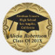 Easily add the graduate's name, school name, and year of graduation onto these popular round, elegant custom graduation beautiful stickers, envelope seals, and party favours. The classy looking gold decorative background with the contrasting black graduation cap with gold tassel graphic design adds to the beauty and richness of these popular and unique stickers. Perfect for the whole class!