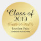 Send out your graduation announcements and graduation party invitations in style with these gold graduation stickers. They are perfect envelope seals. The begin with Class of and then the year. A gold flourish makes an elegant statement and then the graduate's name and their high school or college.