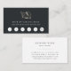 Island chic loyalty cards for any occupation or beach-based business feature a tropical conch shell in faux gold foil on a rich soft black background with white lettering. Add your business name and customer loyalty offer beneath with six punchout circles, and personalize the back with your contact details.