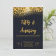 Elegant Gold Confetti on Black | 50th Birthday Invitation