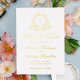 Announce your wedding date with timeless elegance using this gold foil floral crest save the date card. Designed with a classic white background, this refined layout features the couple’s monogram initials framed by a sophisticated gold foil botanical crest and “Save the Date” in graceful gold foil calligraphy. Perfect for formal, black tie, or modern wedding themes, this design sets the tone for a stylish celebration. Personalise with your names, wedding date, and location to give guests a beautifully coordinated first impression of your big day.