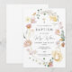 Elegant Gold Cross and blush flowers girl Baptism Invitation