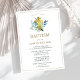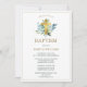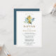 This elegant and simple Baptism invitation features beautiful watercolor green blue foliage and a gold cross on a white background. Use the Design Tools to personalise the text, font and background colours. Also available as digital download.