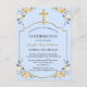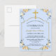 Elegant Gold Cross Blue Floral Confirmation Invita Invitation Postcard