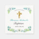 Celebrate your baby boy's baptism with friends and family by offering them these elegant gold and teal blue floral Baptism Invitation napkins. This design features a beautiful gold cross with a blue floral frame against a simple white background. Customise the text and font to your liking. Other fonts and styles available. Please contact us with your special requests and we'd be happy to help you.