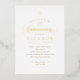 Elegant Gold Cross Calligraphy First Communion Foil Invitation features a delicate modern cross, paired with modern type and beautiful calligraphy script.