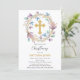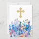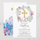 Elegant Gold Cross Christening Floral Invitation