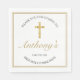 Send a hearty thank you as you offer food and drinks at your child's First Holy Communion with this Elegant Gold Cross First Holy Communion Thank You Napkins. These paper napkins for 1st Communion feature a golden cross against a classic yet minimalist white background with a double gold frame. Personalise with your child's name and the date of your 1st Holy Communion Reception.
