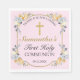 Elegant Gold Cross Pink Floral 1st Holy Communion Napkin