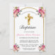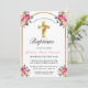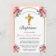Elegant Gold Cross Pink Floral Girl Baptism Invitation