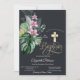 Elegant Gold Cross Tropical Flowers Dark Baptism Invitation