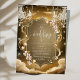 Elegant Gold Crystals Chandelier : An exquisite and luxurious wedding invitation design, featuring a floral motifs, intricately intertwined with gold accents, gracefully dance across the card. These floral elements mingle with the sparkling lights, inviting guests to a majestic celebration of love and union. The invitation promises an unforgettable experience, where guests will be immersed in the opulence of a regal affair, surrounded by the splendour of a lavish and enchanting wedding.