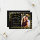 These beautiful save the date cards will let your friends and family know about your upcoming wedding. They feature an elegant black and gold design with your photo in a golden faux foil frame and delicate curls & swirls in the corners. There is space for a customisable calendar of your wedding month with a heart around your special day. Fancy, stylish, posh, and glam, these cards are a wonderful way to start your wedding journey with class and style.