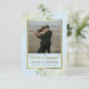 Elegant Gold Curls on Powder Blue Photo Engagement Announcement