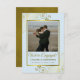 These beautiful engagement announcement cards are a wonderful way to let your friends and family know that you'll be tying the knot. The elegant powder blue design features your photo in a faux foil golden frame surrounded by ornate gold curls & swirls. The title reads "We're Engaged!" with space for your names and a short note. The back is a deep marbled gold colour.