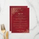 Elegant Gold Curls & Swirls on Crimson Red Wedding Menu