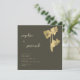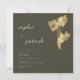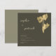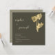 A bunch of daffodils spring flowers, hand-drawn in black graphite pencil and layered digitally with gold (not real foil), decorates this elegant, modern, simple and sophisticated spring wedding invitation square template that features simple, minimalist modern typography, modern calligraphy in the names of the bride and groom and a dark sage green background.