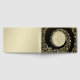 A luxurious wedding guest book featuring an ornate gold damask design with intricate scroll patterns framing the cover, creating a regal and timeless look. The design highlights a central circular damask wreath that beautifully encloses the couple’s names, date, and wedding details, making it the perfect keepsake for elegant weddings. The shimmering gold pattern set against a white background emphasizes sophistication, tradition, and luxury, ideal for couples seeking a classic yet stylish wedding accessory.