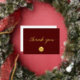 I have corporate clients who always request for beautiful gold foil to enhance the look of their cards. These cards are now available for you to also achieve a gold foil applied to your own logo. Customize the messaging on the back of this card to thank your customers, clients, vendors and employees for their support, include your company name on the sign-off and website (edit or delete if not applicable). Modern, elegant, chic, simple script for the words "thank you". Dark red, wine burgundy background color.