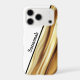 Ready for a new phone case or looking for a personalised gift idea? This design features a name in black. The background features a luxurious gold ribbon on diagonal with solid white. Personalise the text field, remove the text or edit using the design tool to select a font style, size, and colour you prefer.