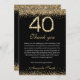 Elegant Gold Diamonds 40th Birthday Thank you Card