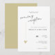 This minimal and elegant evening reception wedding invitation is perfect for a modern wedding reception. Design features an handwritten font and modern minimalist design with a golden heart. You can change the names, wedding location and date, and other details, click «Personalize».