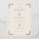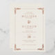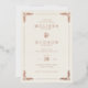 This elegant wedding invitation features a sophisticated and timeless design with an ornate floral border in warm gold tones. The layout is clean and classic, highlighting the text with a mix of serif fonts that add a touch of refinement. Perfect for a formal celebration, this invitation exudes grace and charm, making it ideal for couples who desire an understated yet luxurious feel for their special day. With customizable details, it allows you to personalize your big moment while maintaining its polished aesthetic.