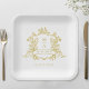 Elegant Gold Floral Crest Monogram Wedding Paper Plate