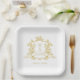 Classic gold floral crest wedding paper plate with monograms, perfect for a modern classic or romantic vintage wedding. For more advanced customisation of this design, please click the BLUE DESIGN TOOL BUTTON above! Matching items are also available.
