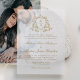 Elegant Gold Floral Crest Monogram Wedding Vellum Invitations