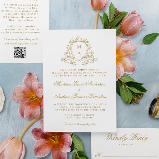 Elegant Gold Floral Crest Monogram WeddingDesigned by Jessica Letterman
