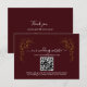 Elegant Gold Floral Deep Burgundy QR Code Wedding Enclosure Card