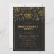 Elegant Floral Engagement Party invitation featuring faux gold foil floral and border against a dark grey background on the front. Invitation has a faux gold polka dot pattern against a dark grey background back side.