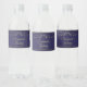 These water bottle labels will make your wedding celebration all the more special. They feature a design that is simple yet elegant with gold text on a navy blue background with a gold faux foil floral border with script lettering for the wedding couple's names and a place to enter the wedding date. Fully customisable text.