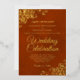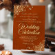 This elegant wedding invitation features real foil printing on a marbled rust orange or burnt umber coloured background. The beautiful design has fancy script lettering with ornate floral curls and swirls in the corners. Stylish, elegant, sophisticated, and chic, this invitation is fancy and glam. Wonderful and classy way to invite your friends and family to share in your joy on your special day.