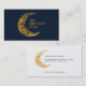 Elegant and unique design featuring our hand-drawn floral crescent moon illustration in an elegant faux gold texture. A dark navy background beautifully displays the gold moon artwork. Personalise with your company name and contact information. The reverse side features the faux gold textured moon artwork with additional contact information beautifully displayed within the middle of the crescent moon. All artwork contained in our elegant navy and gold crescent moon business card are hand-drawn original artwork by Moodthology. You can customise the background colour, font, and layout for your own personal preference.