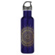 Beautiful circular floral mandala design water bottle in luminous gold, inspired by mehndi henna body art. Hydrate in style at your yoga class or gym!