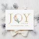 Send holiday cheer to your family and friends with this elegant and modern JOY floral gold