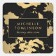 Elegant Gold Floral Pattern Black Square Sticker