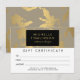 A vintage-inspired faux gold floral pattern creates a beautiful backdrop on this customisable gift certificate template. Your name or business name is stylishly displayed within a gold framed black nameplate on the front. Perfect for salons, boutiques, makeup artists, spas and more. This product is part of a series of coordinating office supplies to help brand your business. Art and design © 1201AM Design Studio | www.1201am.com