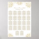 Luminous gold watercolor peonies adorn this elegant wedding seating chart on a crisp white background. Your names and date are presented in refined script above a well-organized table layout. The champagne-toned florals create a timeless, luxurious feel. Every detail is customizable.
