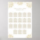 Luminous gold watercolor peonies adorn this elegant wedding seating chart on a crisp white background. Your names and date are presented in refined script above a well-organized table layout. The champagne-toned florals create a timeless, luxurious feel. Every detail is customizable.