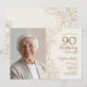 Elegant Gold Floral Photo 90th Birthday Invitation