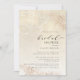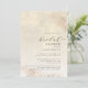 This chic invitation features a blush pink peach textured background accented with gold dust and a white flower.