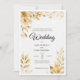 Set a tone of timeless luxury for your special day with this Elegant Gold Floral Wedding Invitation, a premium design that serves as a high-impact first impression for your guests. The card is anchored by a sophisticated shimmering gold-leaf motif that spills across a crisp white canvas, creating a multi-dimensional, executive aesthetic that promises a day of prestige. Featuring a professional information hierarchy, the layout balances flowing script with clean serif typography to ensure all logistical details—from the host names to the venue location—are immediately scannable. By choosing this invitation, you are investing in a cohesive brand identity for your wedding that reflects absolute attention to detail and elite style.