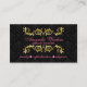 © 2011 Socialite Designs. Elegant business card design with gold flourish decorations, damask background and pink text. A stylish business card not only for a makeup artist, but for anyone wanting a classy business card.