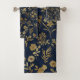 Elegant Gold Flowers Blue Botanical Bath Towel Set